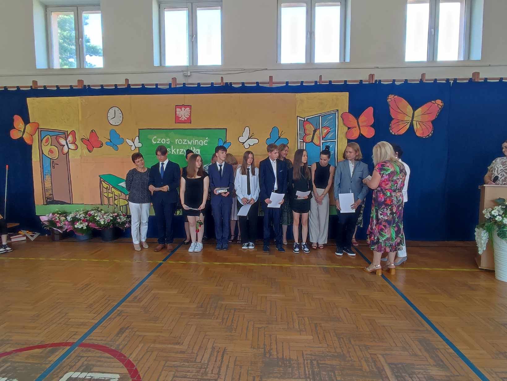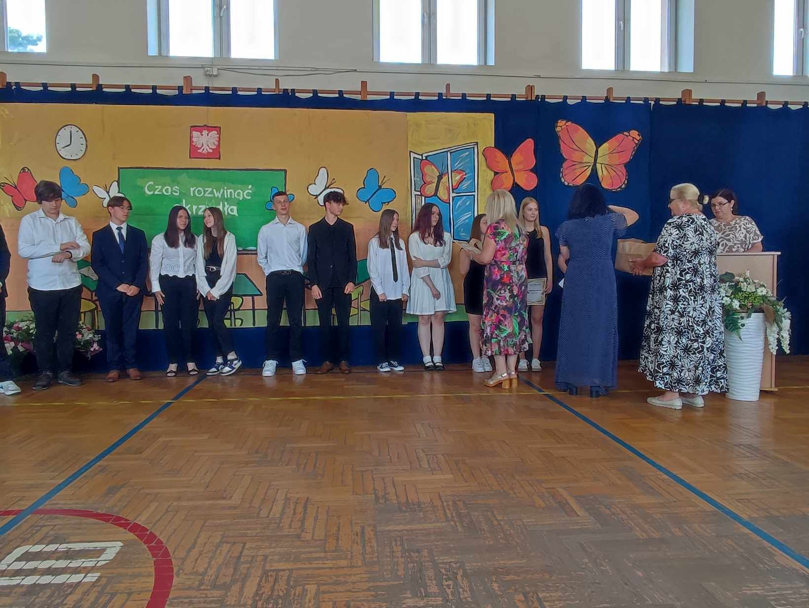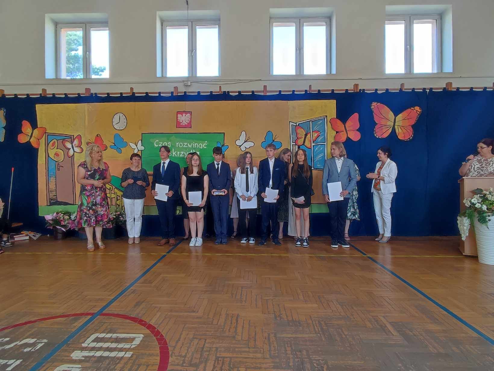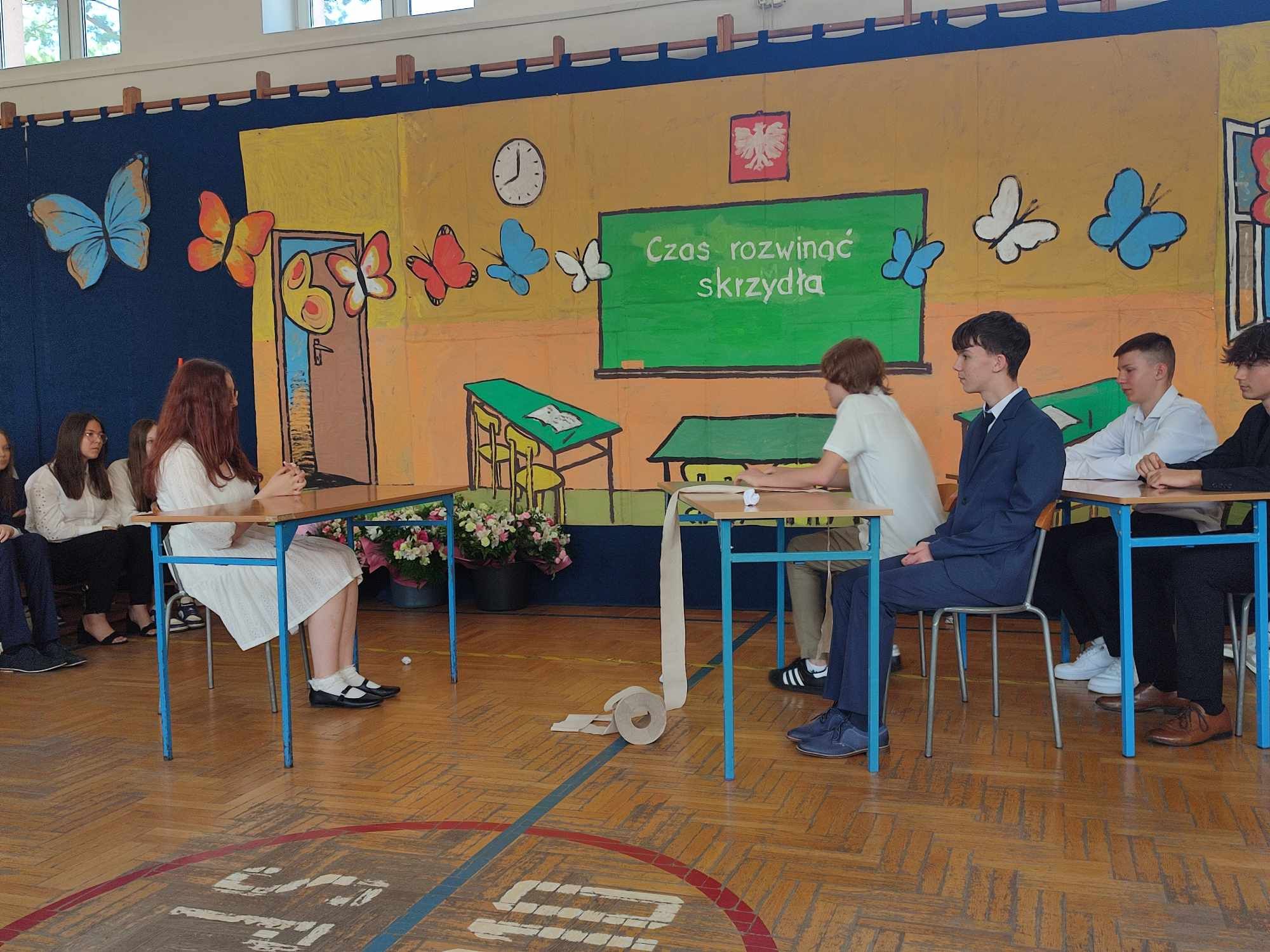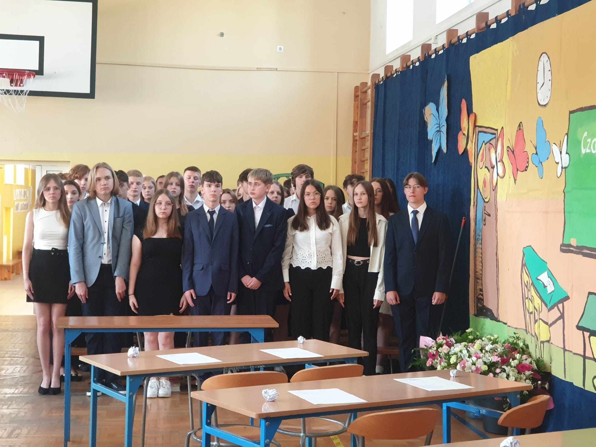 Dziś w naszej szkole odbyło się uroczyste zakończenie roku szkolnego klas VIII. Wydarzenie rozpoczęło się uroczystym ślubowaniem absolwentów, następnie uczniowie klas VIII zaprezentowali część artystyczną. Po krótkim występie nastąpiło wręczanie dyplomów oraz nagród. Najważniejszą nagrodą przyznawaną w naszej szkole są medale: