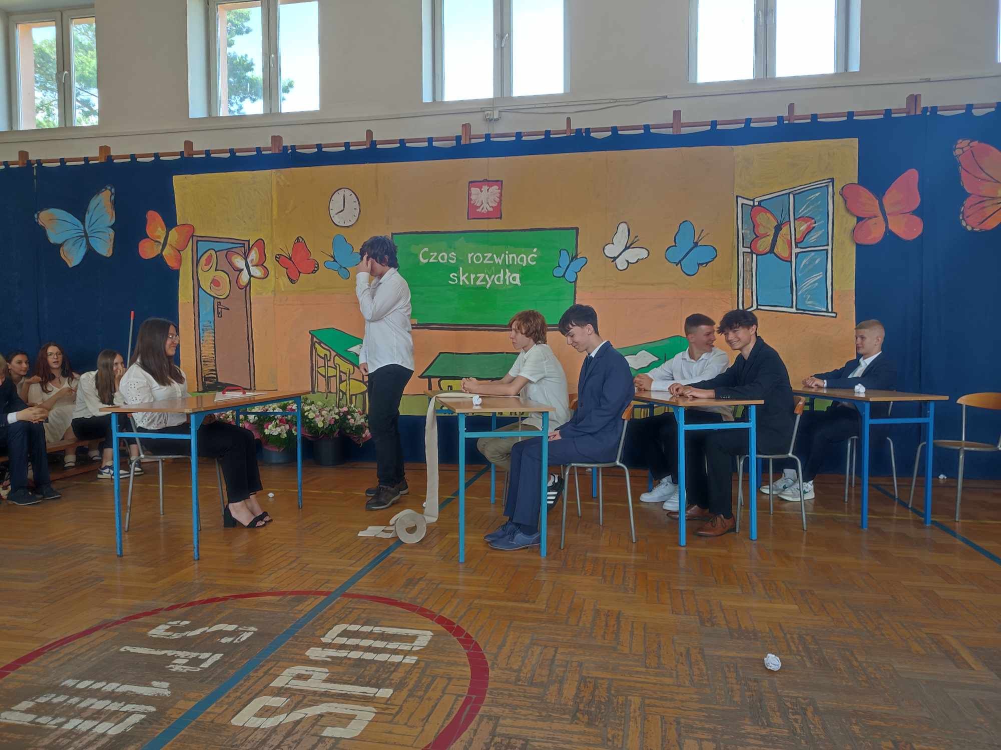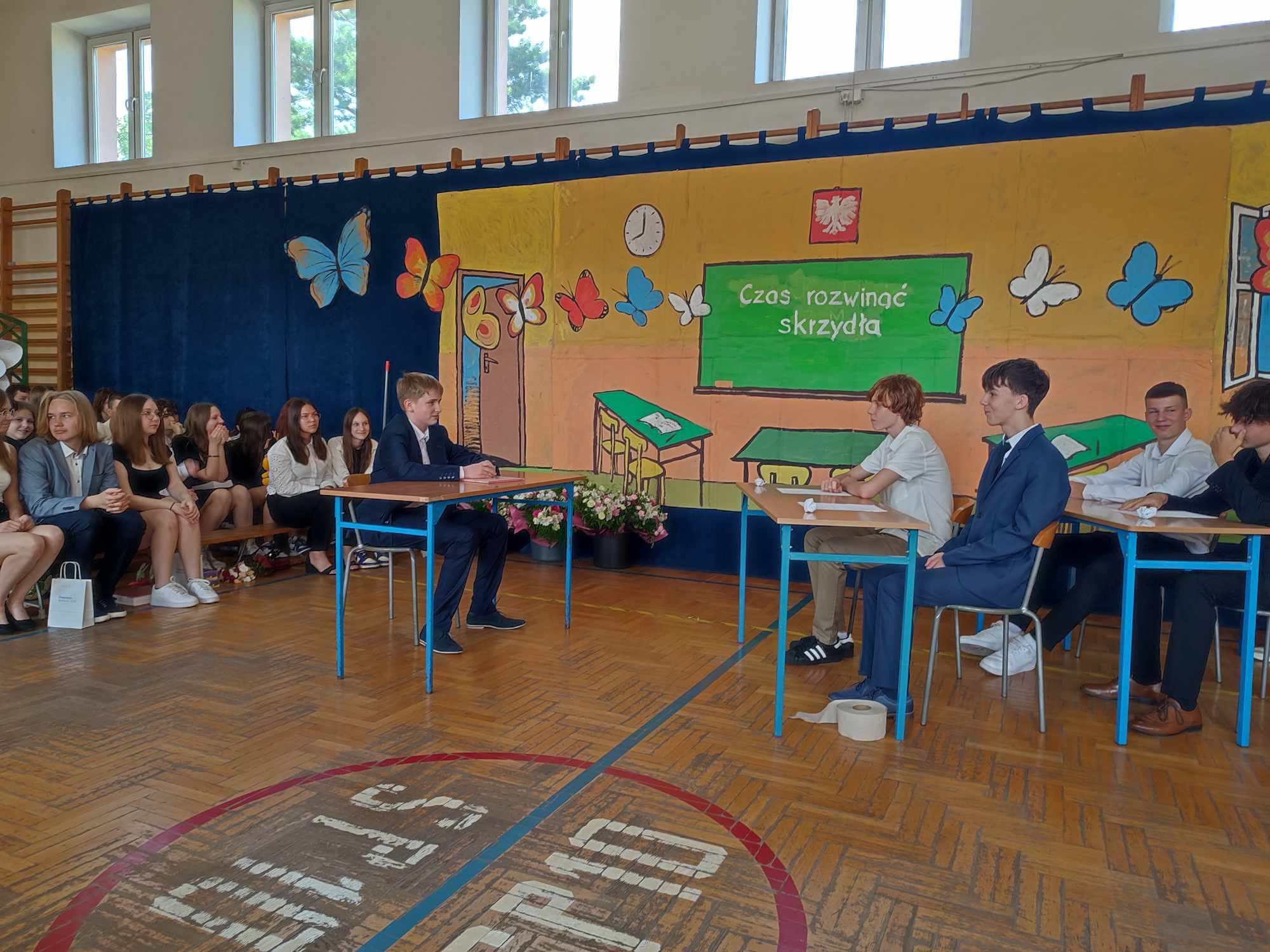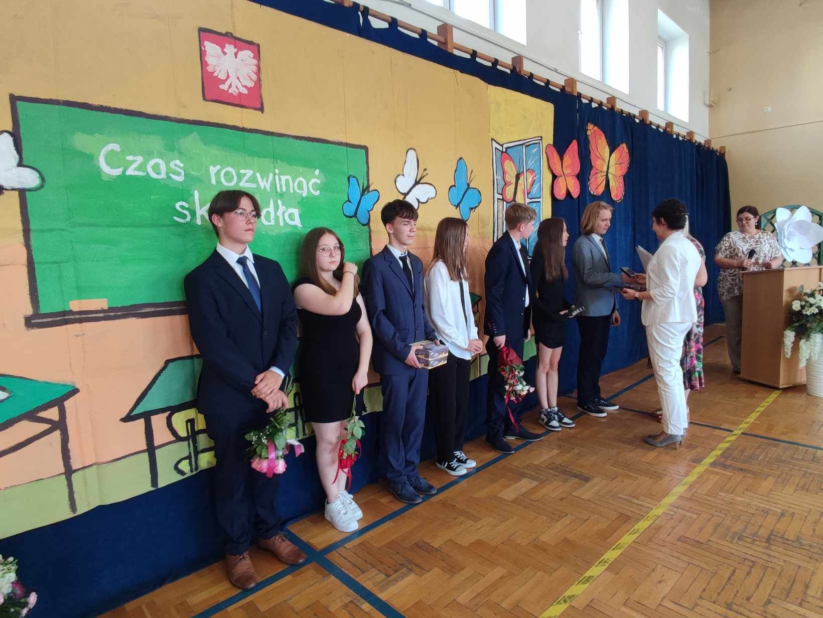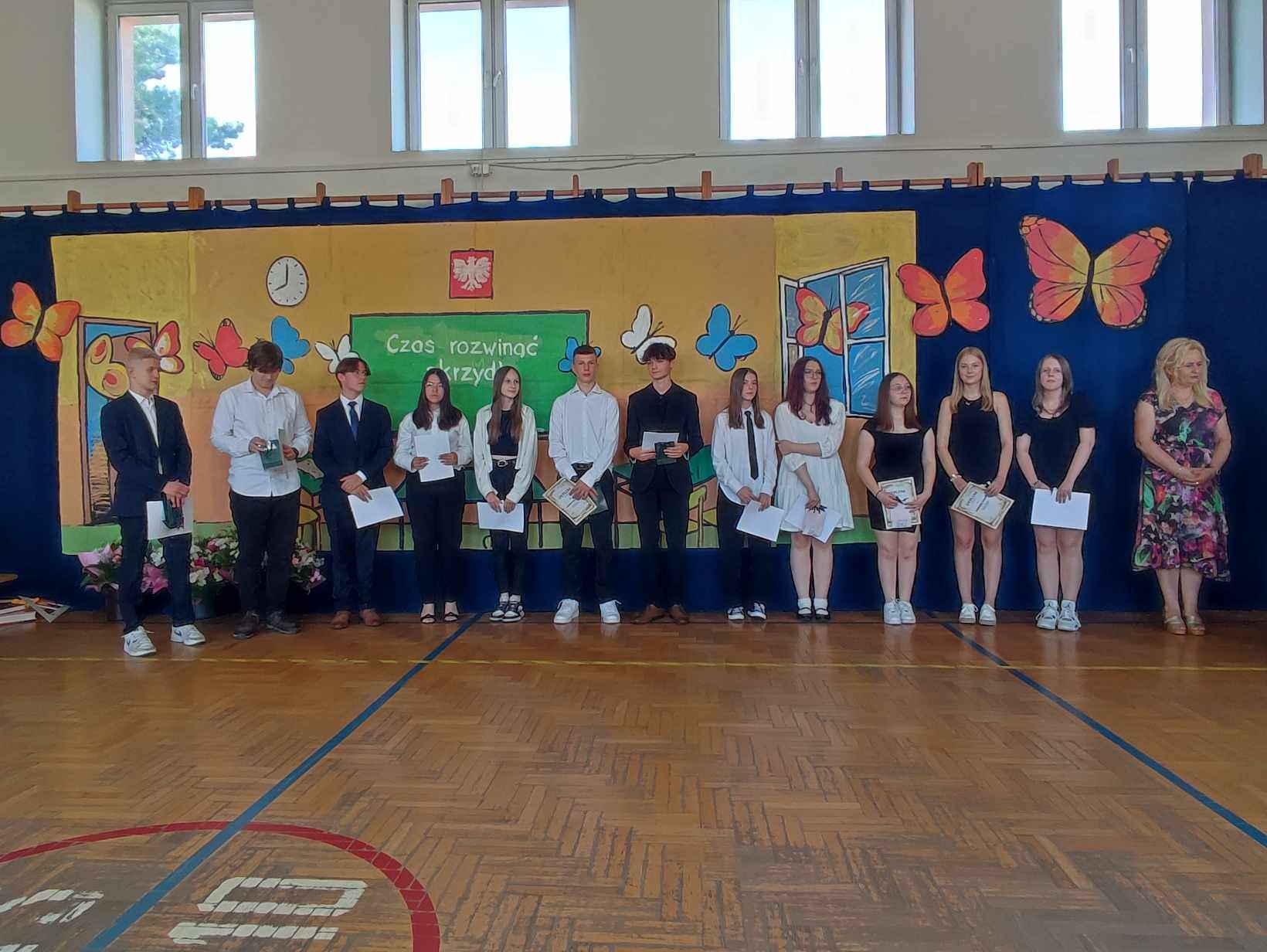 Dziś w naszej szkole odbyło się uroczyste zakończenie roku szkolnego klas VIII. Wydarzenie rozpoczęło się uroczystym ślubowaniem absolwentów, następnie uczniowie klas VIII zaprezentowali część artystyczną. Po krótkim występie nastąpiło wręczanie dyplomów oraz nagród. Najważniejszą nagrodą przyznawaną w naszej szkole są medale: