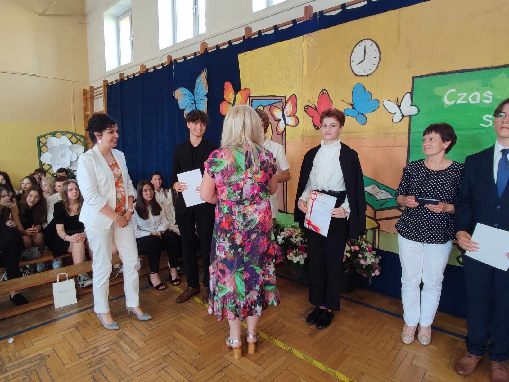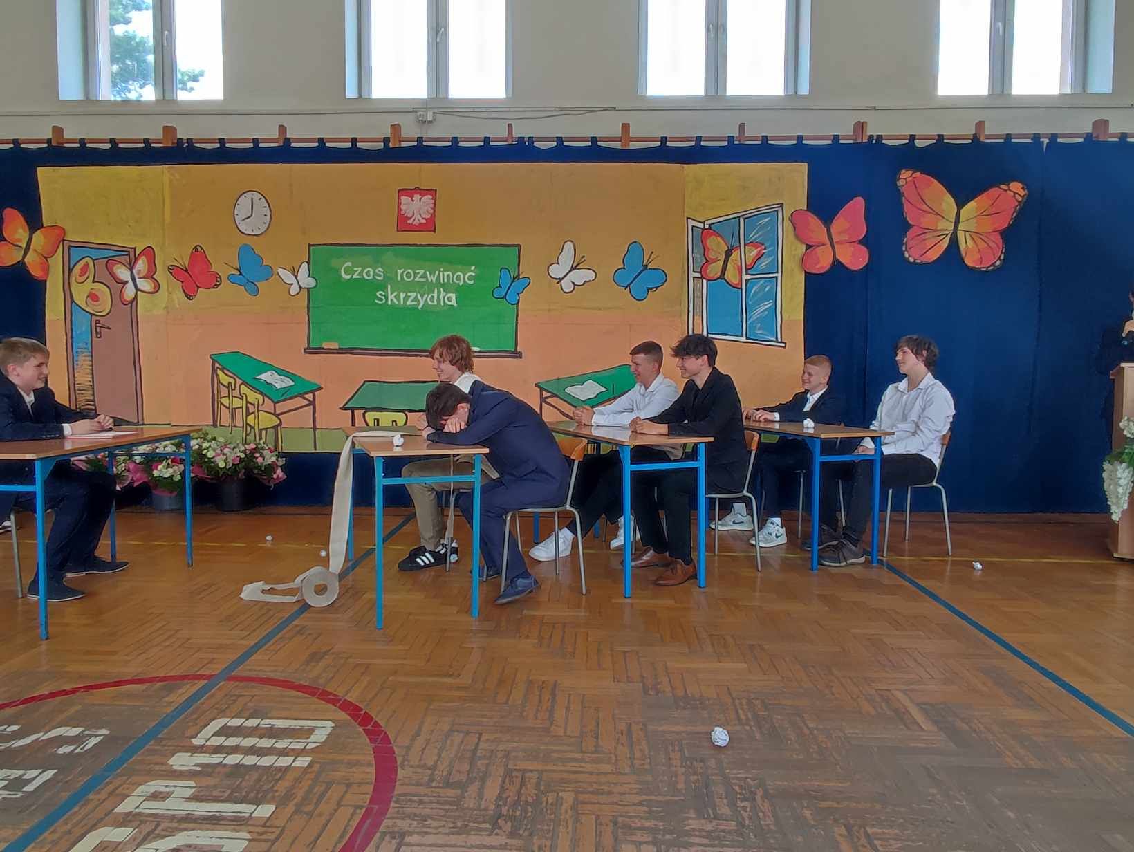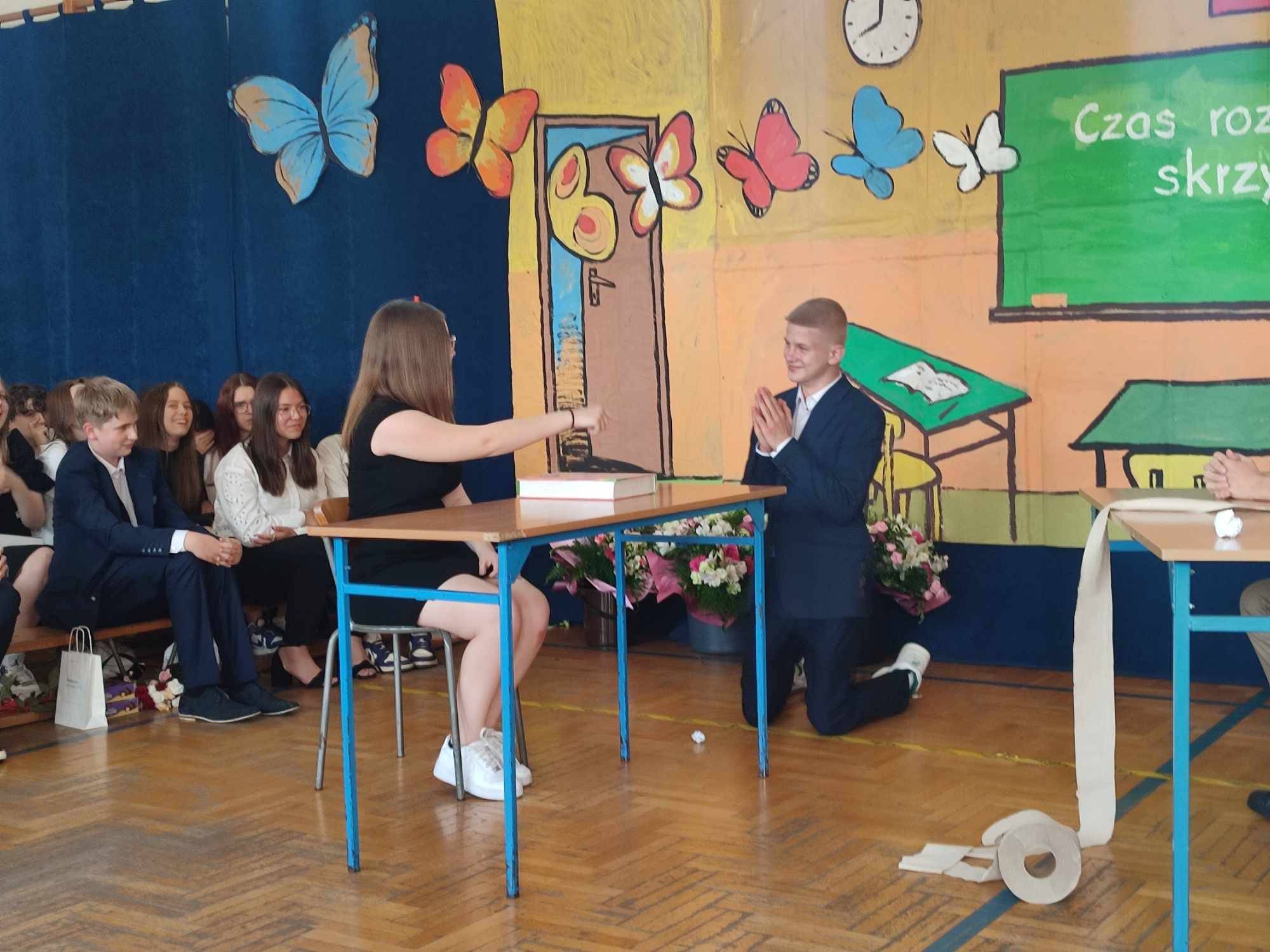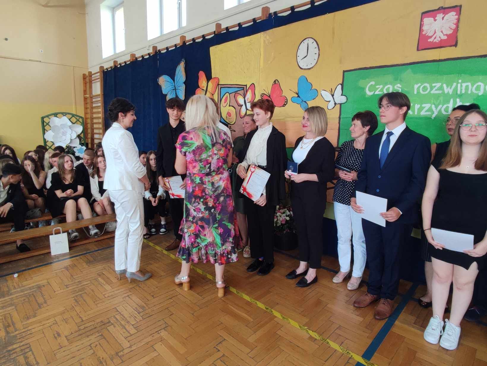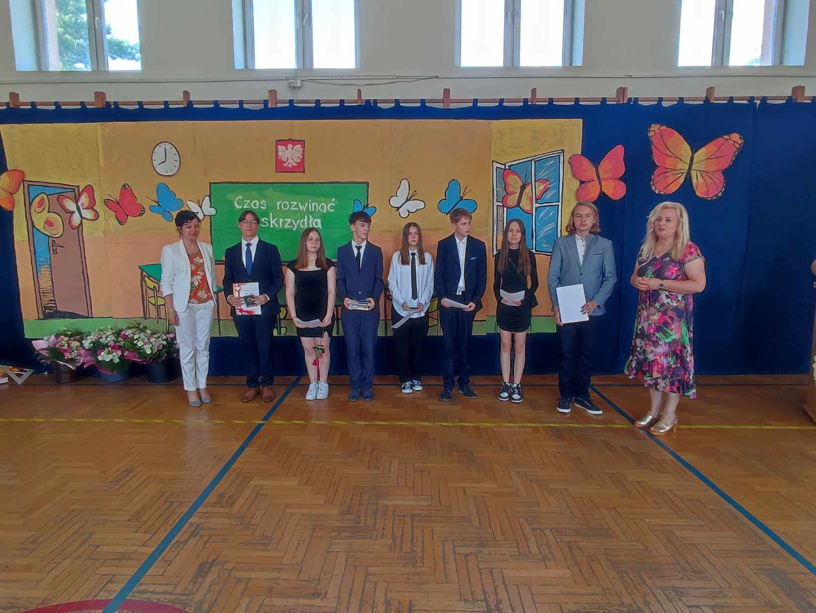 Dziś w naszej szkole odbyło się uroczyste zakończenie roku szkolnego klas VIII. Wydarzenie rozpoczęło się uroczystym ślubowaniem absolwentów, następnie uczniowie klas VIII zaprezentowali część artystyczną. Po krótkim występie nastąpiło wręczanie dyplomów oraz nagród. Najważniejszą nagrodą przyznawaną w naszej szkole są medale: