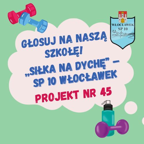 Nasza szkoła bierze udział z projektem nr 45 – „Siłka na dychę”, który zakłada stworzenie nowoczesnej, plenerowej siłowni przy Szkole Podstawowej nr 10 we Włocławku.