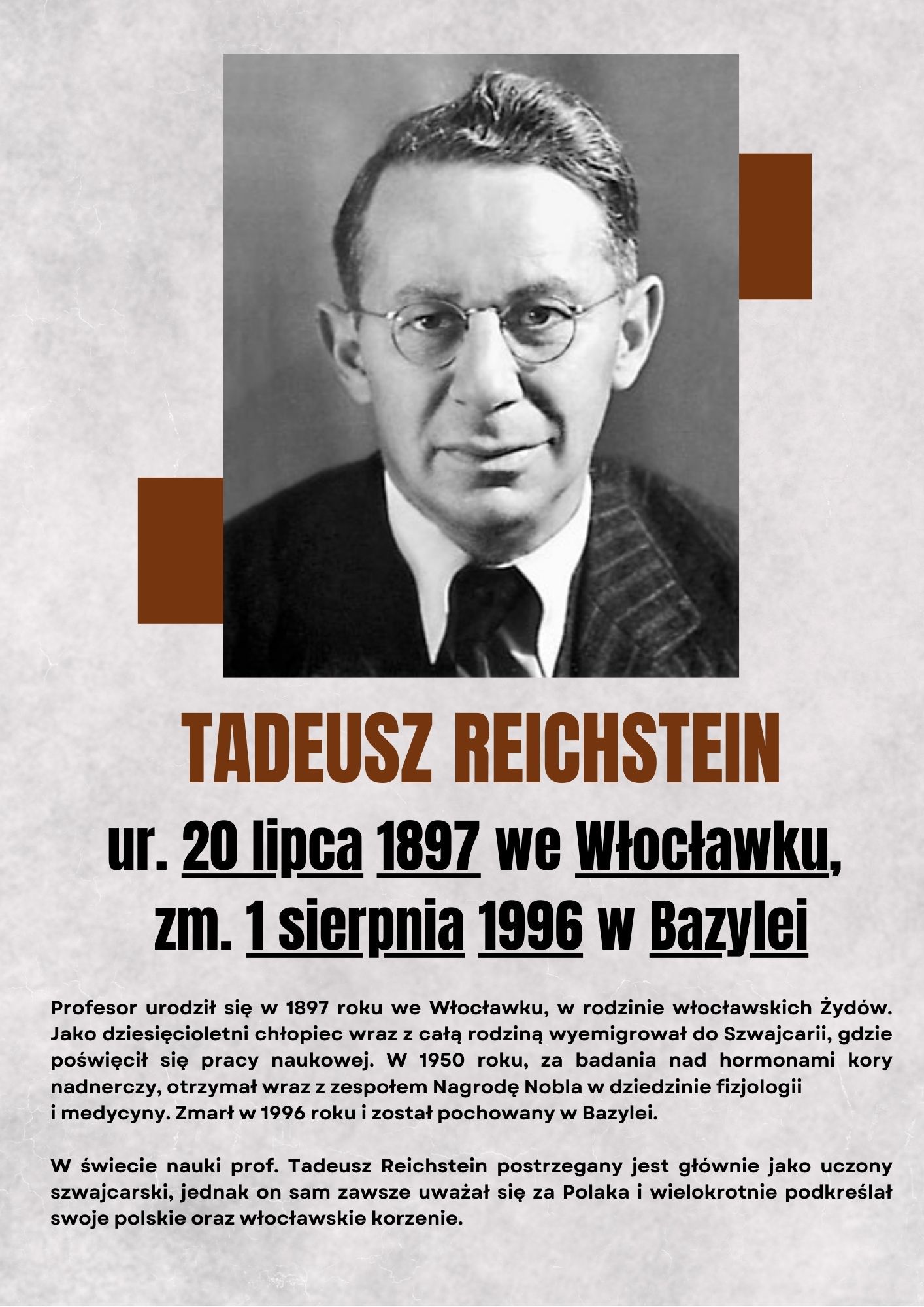 Rok 2026 został we Włocławku ogłoszony Rokiem Tadeusza Reichsteina – wybitnego chemika, laureata Nagrody Nobla, urodzonego w naszym mieście. To wyjątkowa okazja, by przybliżyć sylwetkę uczonego, jego osiągnięcia oraz znaczenie dla światowej nauki.
